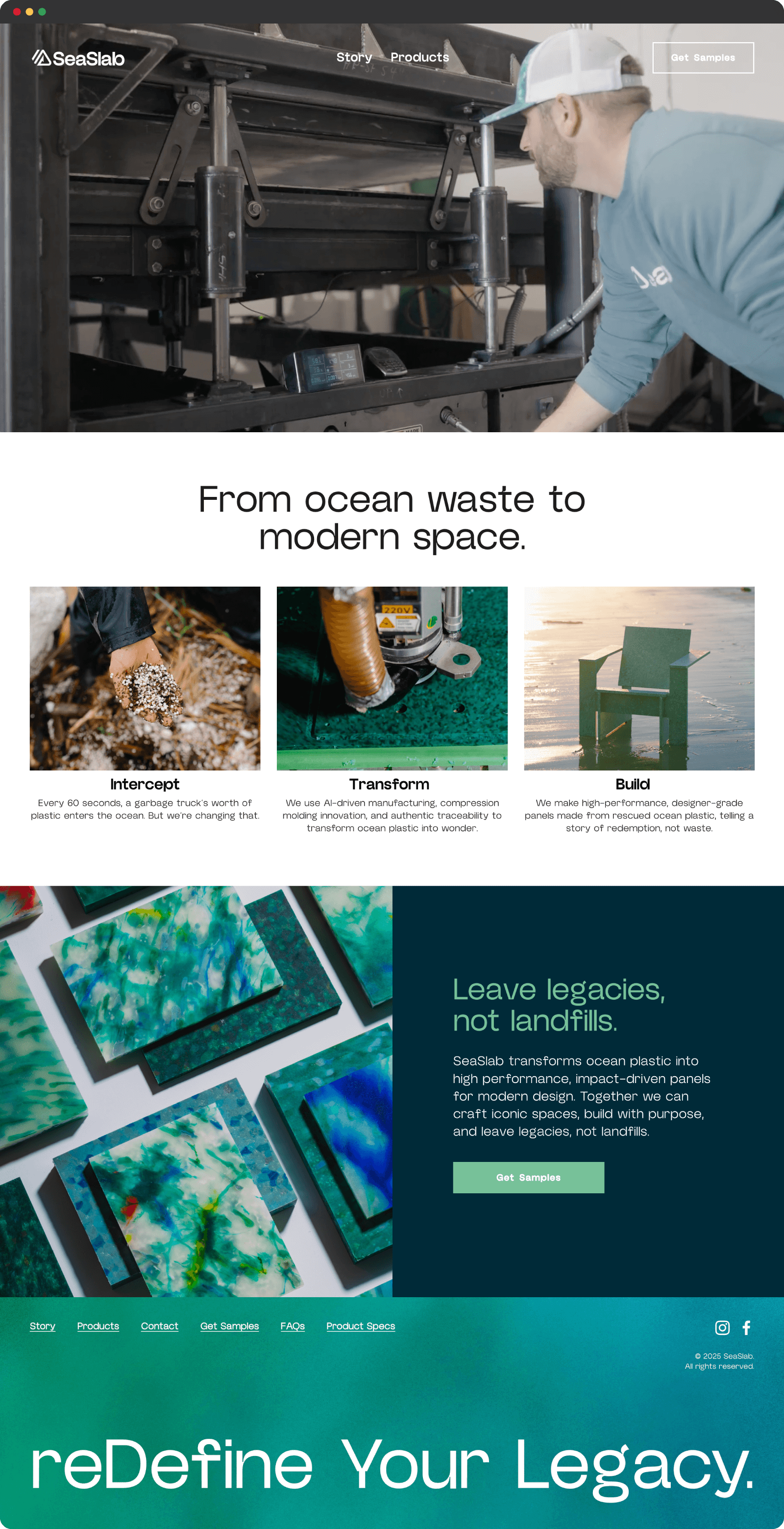 I created an iconic brand identity and visual system for SeaSlab to establish legitimacy and recognition in the quickly growing and ultra-competitive sustainable materials industry.
